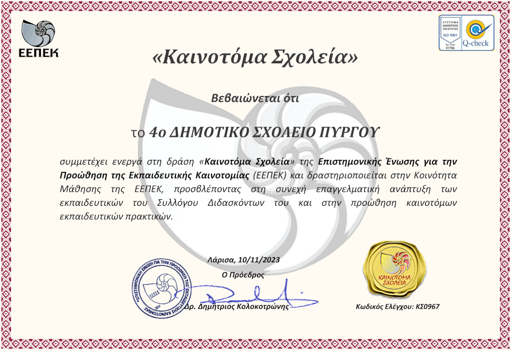 Συμμετοχή στη Δράση "Καινοτόμα Σχολεία"