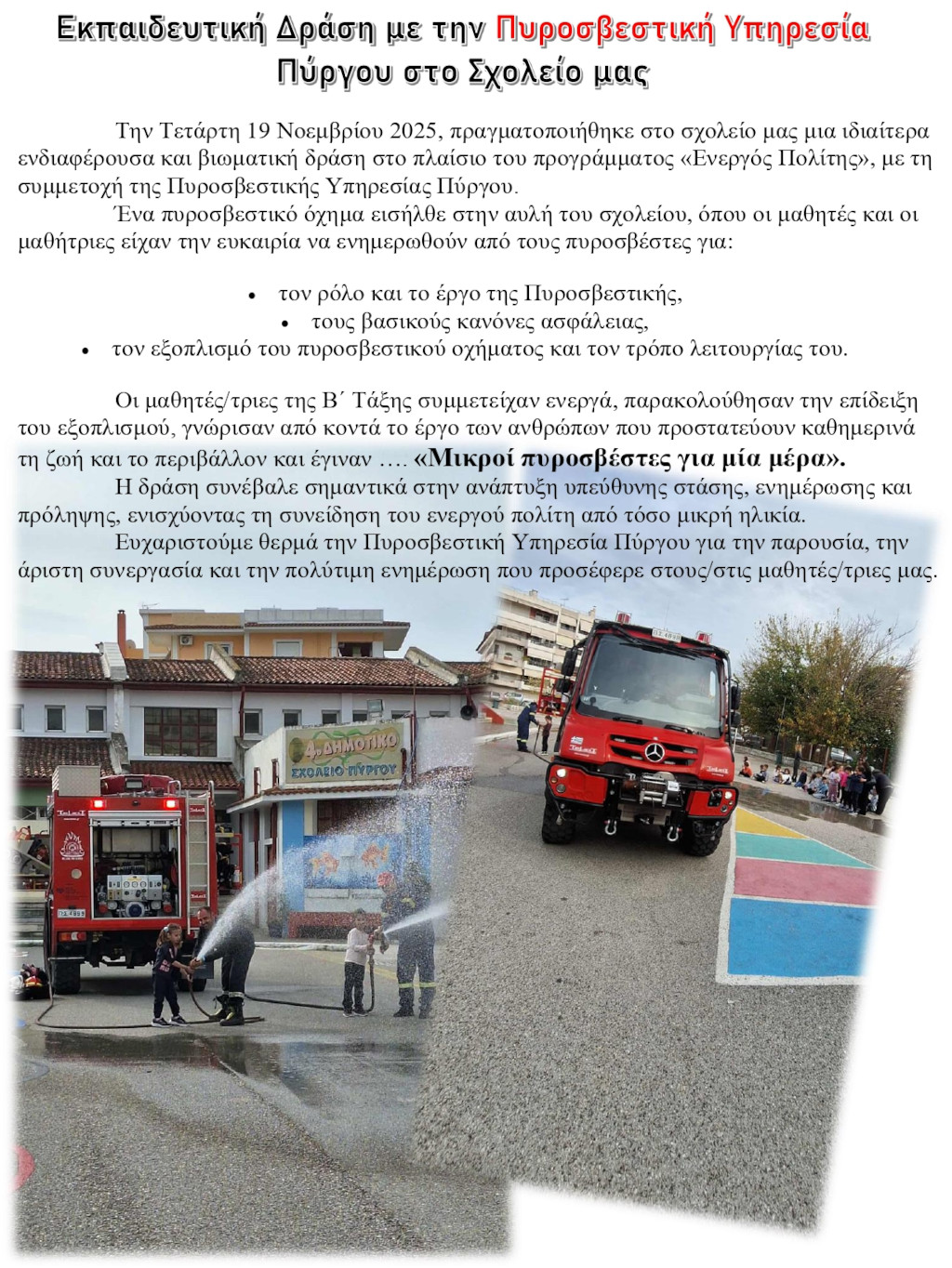 ΜΙΚΡΟΙ ΠΥΡΟΣΒΕΣΤΕΣ ΓΙΑ ΜΙΑ ΜΕΡΑ
