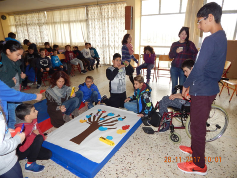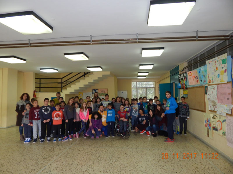 Στα πλαίσια της παγκόσμιας ημέρας για Άτομα με Ειδικές Ανάγκες η Δ’ τάξη του Σχολείου μας επισκέφθηκε την Τρίτη 28 Νοεμβρίου 2017 το Ειδικό Δημοτικό Σχολείο Πύργου. Τα παιδιά αντάλλαξαν αναμνηστικά δώρα και συμμετείχαν σε κοινές δράσεις με τους μαθητές του Ειδικού Σχολείου. Μέσα από αυτή τη διάδραση οι μαθητές μας κατανόησαν ότι η χαρά που δίνει κανείς μπορεί να εξαλείψει κάθε πρόβλημα και κάθε φοβία και ότι η αποδοχή και ο σεβασμός στη διαφορετικότητα είναι δικαίωμα και υποχρέωση κάθε πολιτισμένης κοινωνίας.