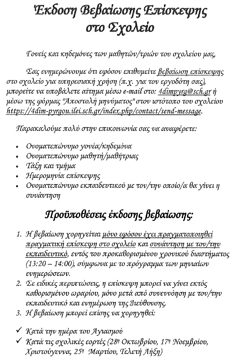 Προϋποθέσεις Έκδοσης Βεβαίωσης Επίσκεψης